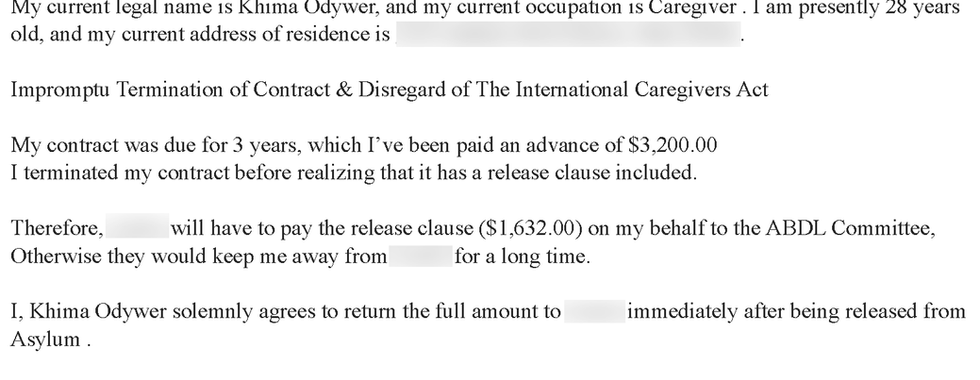 She, of course, didn't have the money, but if he could give her a small loan, she'd gladly sign an affidavit to repay him. He also received a lovely letter from an attorney, laying out the case for him. Oh and also, they were keeping her against her will...