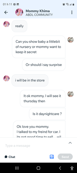 By this time, Fred was invested in his "relationship" with Khima, he felt a bond with her (which can be quick and strong in the Cg/l dynamic). So when she told him that she wanted to get out of her contract with the ABDL Community group, he was supportive of her. Unfortunately, it was only after she'd done so that she suddenly realized that in her contract there was an early termination fee.