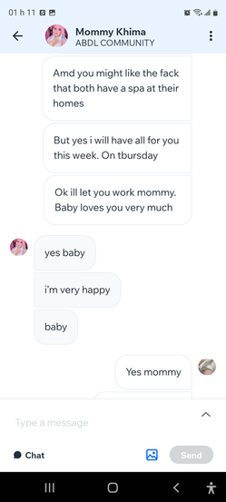 He was introduced to Mommy Khima and paid extra for a "Relationship Certification." Below is Khima's profile, the Certification, and some of their communication (the images of which are put into this gallery backwards, so scroll to the end if you want to look at them in order).